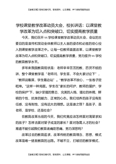 学校课堂教学改革动员大会,校长讲话:以课堂教学改革为切入点和突破口,切实提高教学质量.docx