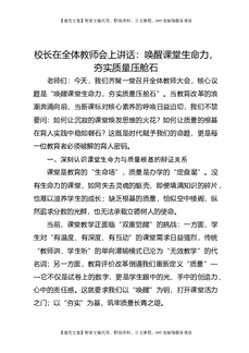 校长在全体教师会上讲话:唤醒课堂生命力,夯实质量压舱石.docx