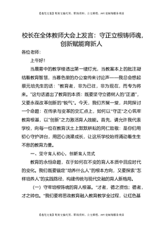 校长在全体教师大会上发言:守正立根铸师魂,创新赋能育新人.docx