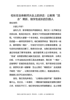 校长在全体教师大会上的讲话:让教育“活水”常新,做学生成长的引路人.docx