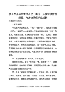 校长在全体班主任会议上讲话:分享班级管理经验,与各位共促学生成长.docx