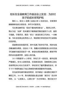 校长在全县教育工作座谈会上发言:为农村孩子的成长保驾护航.docx