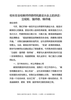 校长在全校教师师德师风建设大会上的讲话:立规矩,强师德,铸师魂.docx