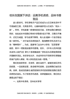 校长在国旗下讲话:远离手机诱惑,品味书香致远.docx