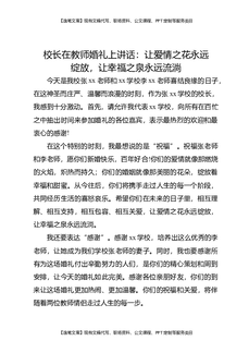 校长在教师婚礼上讲话:让爱情之花永远绽放,让幸福之泉永远流淌.docx