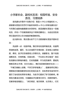 小学家长会,副校长发言:校园环境、安全责任、习惯培养.docx