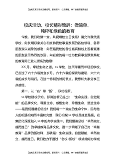 校庆活动,校长精彩致辞:做简单、纯粹和绿色的教育.docx