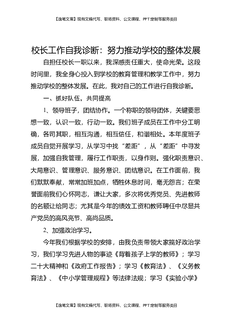校长工作自我诊断:努力推动学校的整体发展.docx