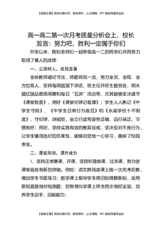 高一高二第一次月考质量分析会上,校长发言:努力吧,胜利一定属于你们.docx