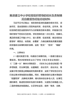 推进建立中小学校党组织领导的校长负责制情况自查报告经验总结材料.docx