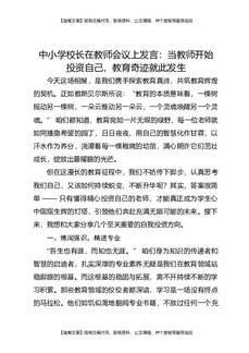 中小学校长在教师会议上发言:当教师开始投资自己,教育奇迹就此发生.docx