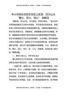 中小学校长在班主任会上发言:压力山大,“爱心、匠心、恒心”来解压.docx