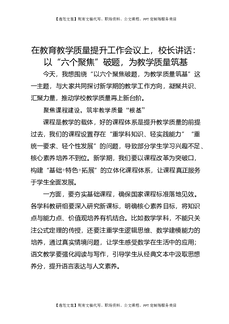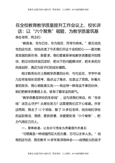 在教育教学质量提升工作会议上,校长讲话:以“六个聚焦”破题,为教学质量筑基.docx