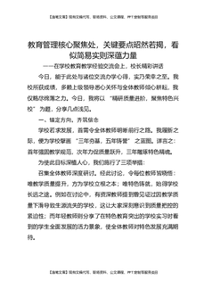 在学校教育教学经验交流会上,校长精彩讲话:教育管理核心聚焦处,关键要点昭然若揭,看似简易实则深蕴力量.docx