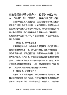 在教学质量经验交流会上,教学副校长发言:从“跟跑”到“领跑”,教学质量跃升秘籍.docx