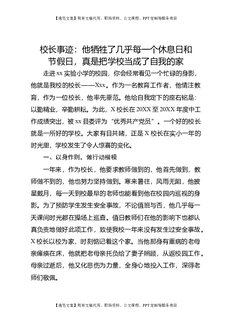 校长事迹:他牺牲了几乎每一个休息日和节假日,真是把学校当成了自我的家.doc