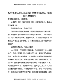 校长年度工作汇报发言:常怀律己之心,奉献山区教育事业.doc