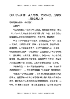 校长论坛演讲:以人为本,文化兴校,走学校内涵发展之路.doc