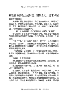 在全体教师会上的讲话:凝聚合力,追求卓越.docx