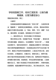 学校校园餐工作,校长汇报发言:以食为基育健康,以管为要促安心.docx