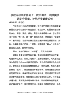 学校运动会部署会上,校长讲话:细抓实抓运动会筹备,护航学生健康成长.docx