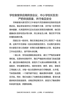 学校食堂供应商供货会议,中小学校长发言:严把供货质量,共守食品安全.docx