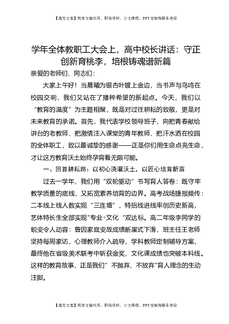 学年全体教职工大会上,高中校长讲话:守正创新育桃李,培根铸魂谱新篇.doc