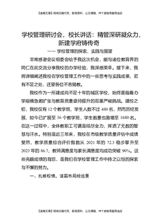 学校管理研讨会,校长讲话:精管深研凝众力,新建学府铸传奇——学校管理的探索、实践与展望.docx