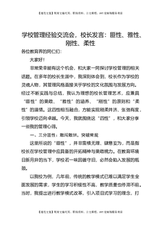 学校管理经验交流会,校长发言:匪性、雅性、刚性、柔性.docx