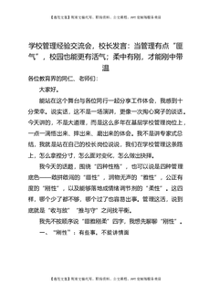 学校管理经验交流会,校长发言:当管理有点“匪气”,校园也能更有活气;柔中有刚,才能刚中带温.docx
