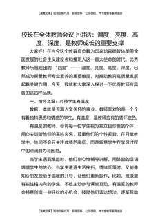 校长在全体教师会议上讲话:温度、亮度、高度、深度,是教师成长的重要支撑.docx