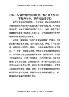校长在全县教育教学质量提升推进会上发言:不靠升学率,照样打造好学校.docx