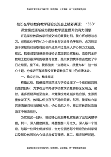 校长在学校教育教学经验交流会上精彩讲话:“353”课堂模式逐渐成为我校教学质量提升的有力引擎.docx