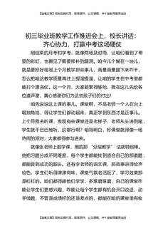 初三毕业班教学工作推进会上,校长讲话:齐心协力,打赢中考这场硬仗.docx
