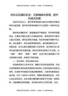 校长论坛精彩发言:注重精细化管理,提升内涵式发展.docx