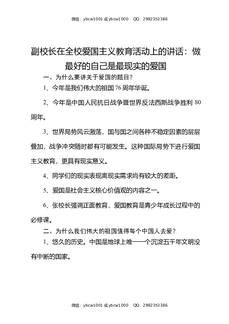 副校长在全校爱国主义教育活动上的讲话:做最好的自己是最现实的爱国.docx