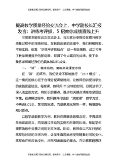 提高教学质量经验交流会上,中学副校长汇报发言:讲练考评抓,5招教你成绩直线上升.docx