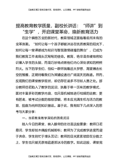 提高教育教学质量,副校长讲话:“师讲”到“生学”,开启课堂革命,焕新教育活力.docx