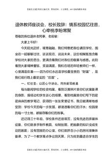 退休教师座谈会,校长致辞:情系校园忆往昔,心牵桃李盼常聚.docx