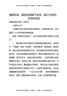 值周总结,副校长国旗下发言:凝心守规范文明共成长.docx