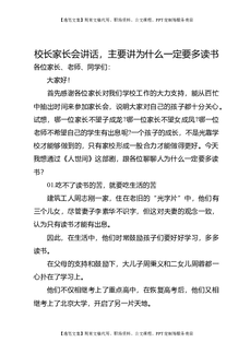 校长家长会讲话,主要讲为什么一定要多读书.doc