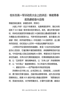 校长在高一军训动员大会上的讲话:铸就青春底色,磨砺奋斗品格.docx
