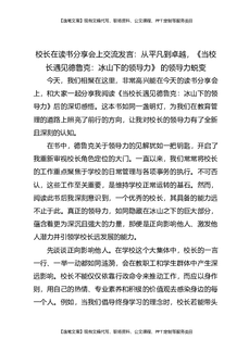 校长在读书分享会上交流发言:从平凡到卓越,《当校长遇见德鲁克:冰山下的领导力》的领导力蜕变.docx