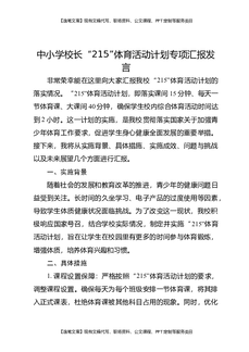 中小学校长“215”体育活动计划专项汇报发言.docx