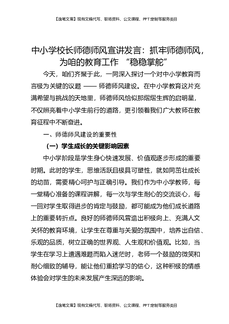 中小学校长师德师风宣讲发言:抓牢师德师风,为咱的教育工作“稳稳掌舵”.docx