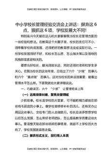 中小学校长管理经验交流会上讲话:摒弃这6点,狠抓这6项,学校发展大不同.docx