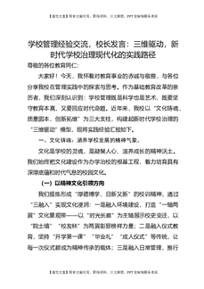 学校管理经验交流,校长发言:三维驱动,新时代学校治理现代化的实践路径.doc