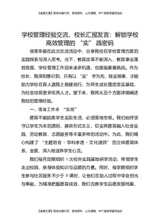 学校管理经验交流,校长汇报发言:解锁学校高效管理的“实”践密码.docx