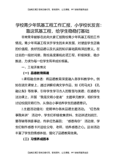 学校青少年筑基工程工作汇报,小学校长发言:靠这筑基工程,给学生稳稳打基础.docx