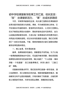 初中学校课堂教学改革工作汇报,校长发言:“改”出课堂新活力,“革”出成长新路径.docx